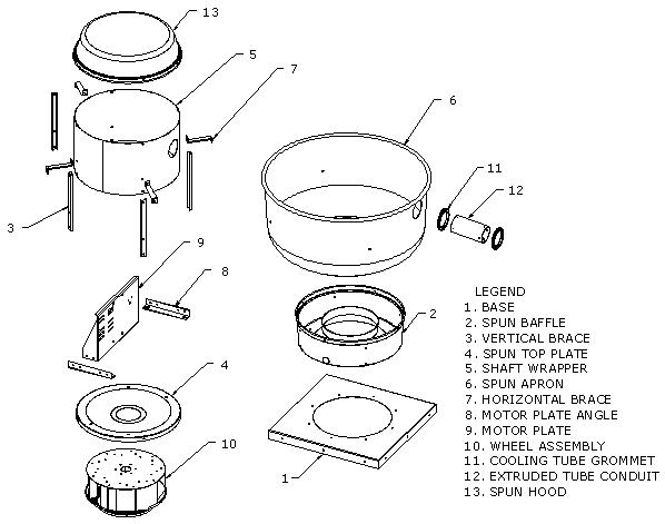 - Fan wheel should not run at speeds higher than specified for motor